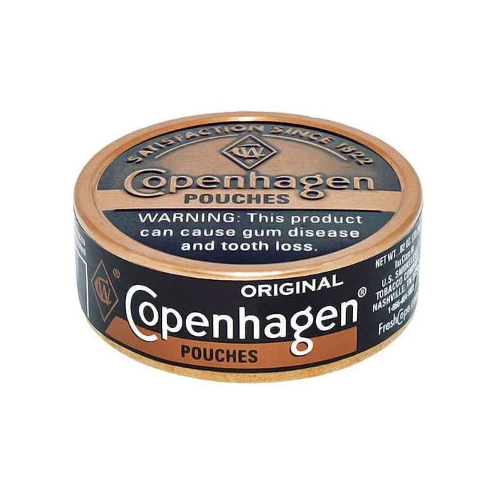 The original Copenhagen pouches cans contain 15 moist smokeless tobacco pouches with a tobacco flavor. Each Copenhagen tobacco pouch contains a blend of tobacco, flavorings, and nicotine.