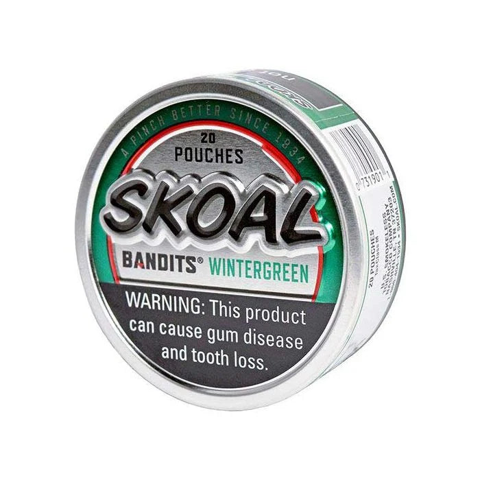 Skoal Bandit pouches are pre-portioned pouches of moist tobacco (also known as dip pouches). Each of these Skoal cans contains 20 moist smokeless tobacco pouches with wintergreen flavor.
